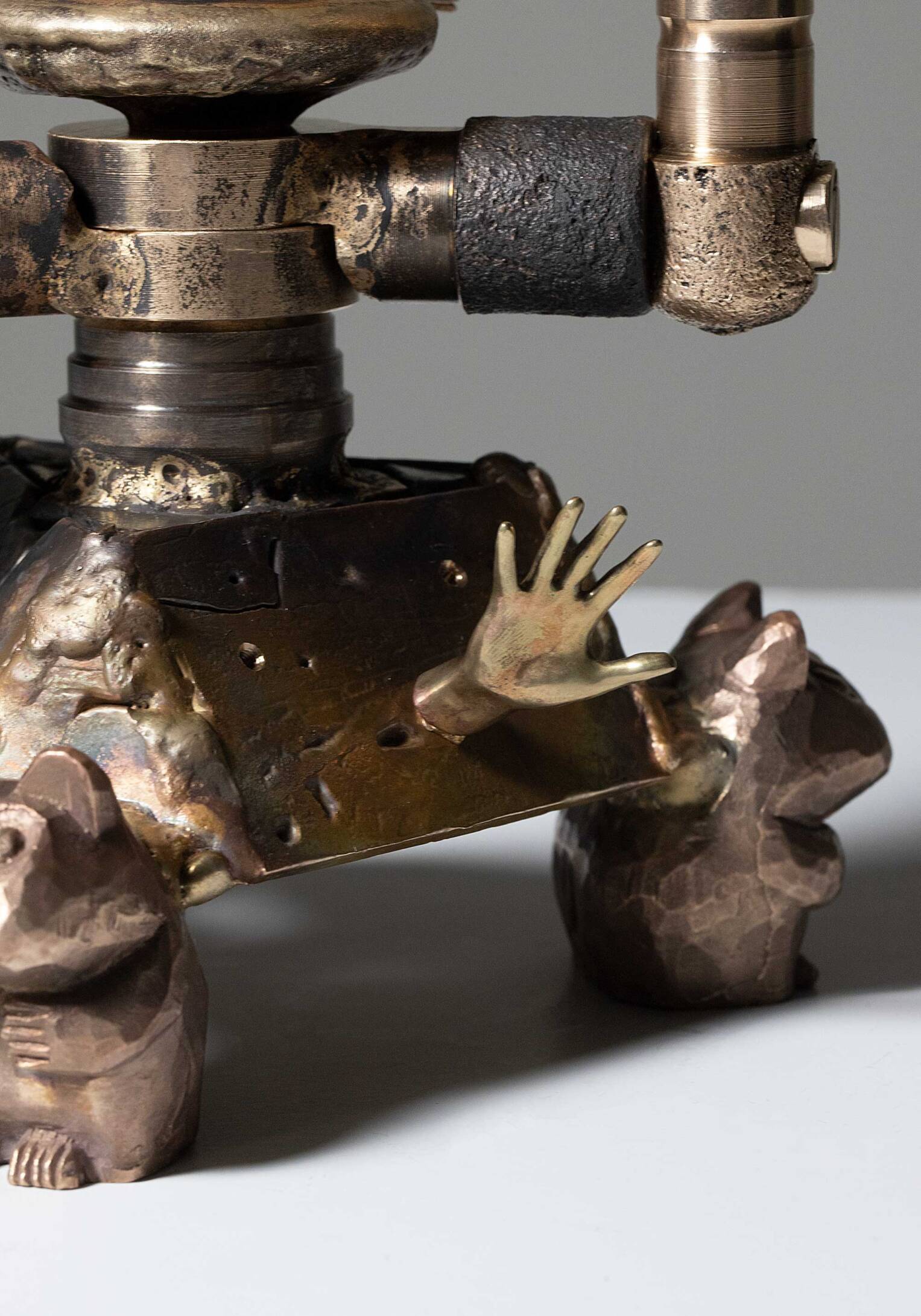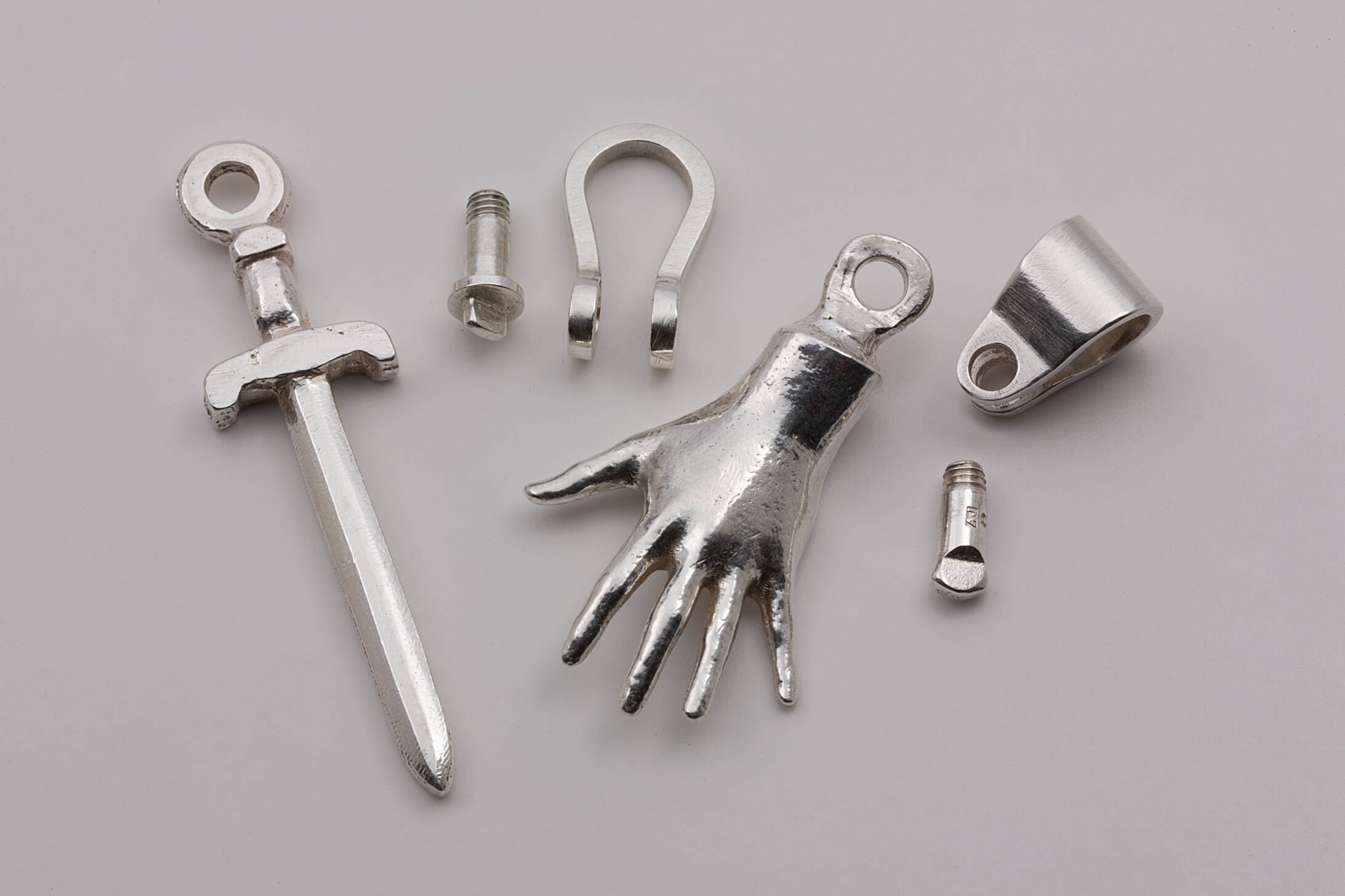 I Albin Josephsons praktik är begreppet “transformation” centralt. En transformation från ett material till ett annat, eller från en vag tanke till ett påtagligt objekt. Gamla idéer blandas med nya i en feberdrömsk massa. Här samsas traditionell ornamentik med okonventionella element, och det finns rum för både det polerade och det råa. Objekten kan ses som symboler: de representerar en funktion, men kan också få olika innebörd beroende på betraktarens sätt att relatera till dem. Albin tog sin kandidatexamen på Konstfack Smycke och corpus: Ädellab 2023 och har sedan dess blivit medlem i LOD. Han har medverkat i utställningar på bland annat Hallwylska museet, Botkyrka konsthall, Bonniers konsthall och Sven-Harrys Konstmuseum.